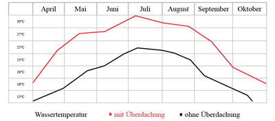 Temperaturkurvenvergleich mit und ohne Schwimmbadüberdachung |